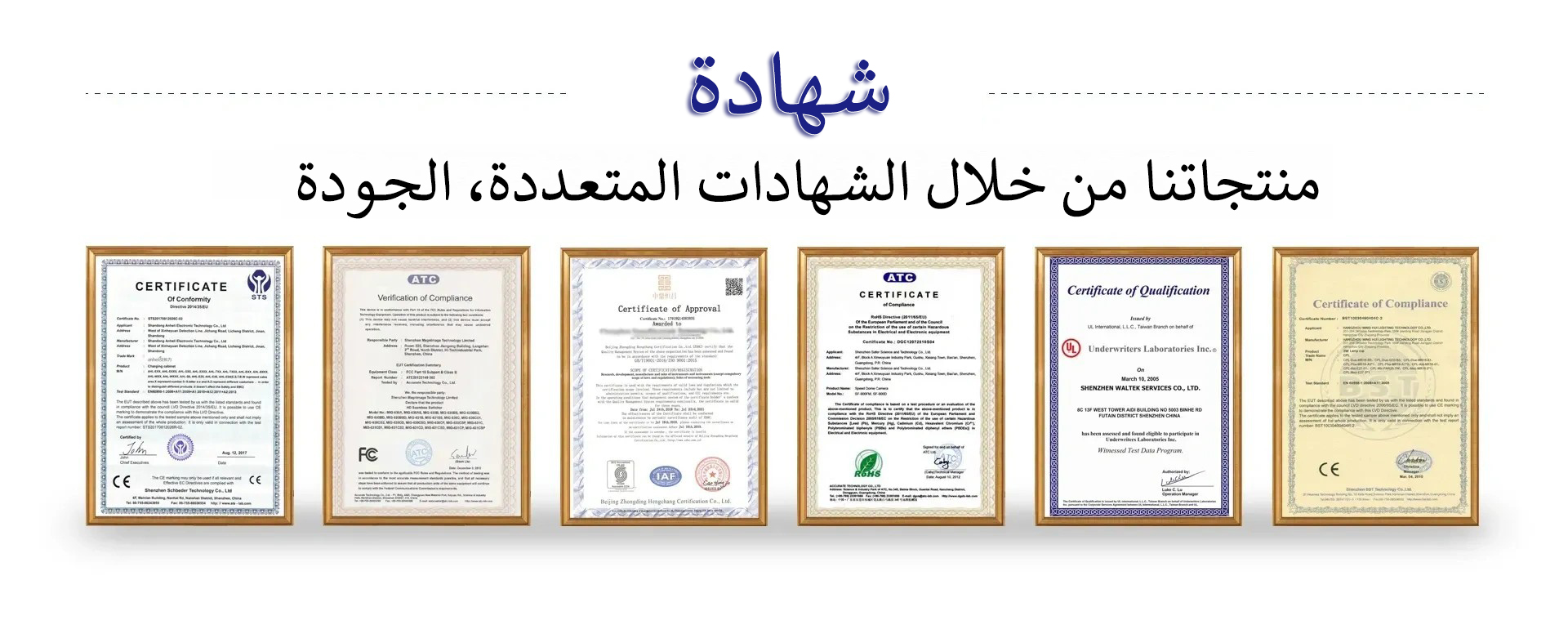 لقد اجتازت المنتجات عدة شهادات دولية وحصلت على تراخيص التسويق في العديد من الدول والمناطق.