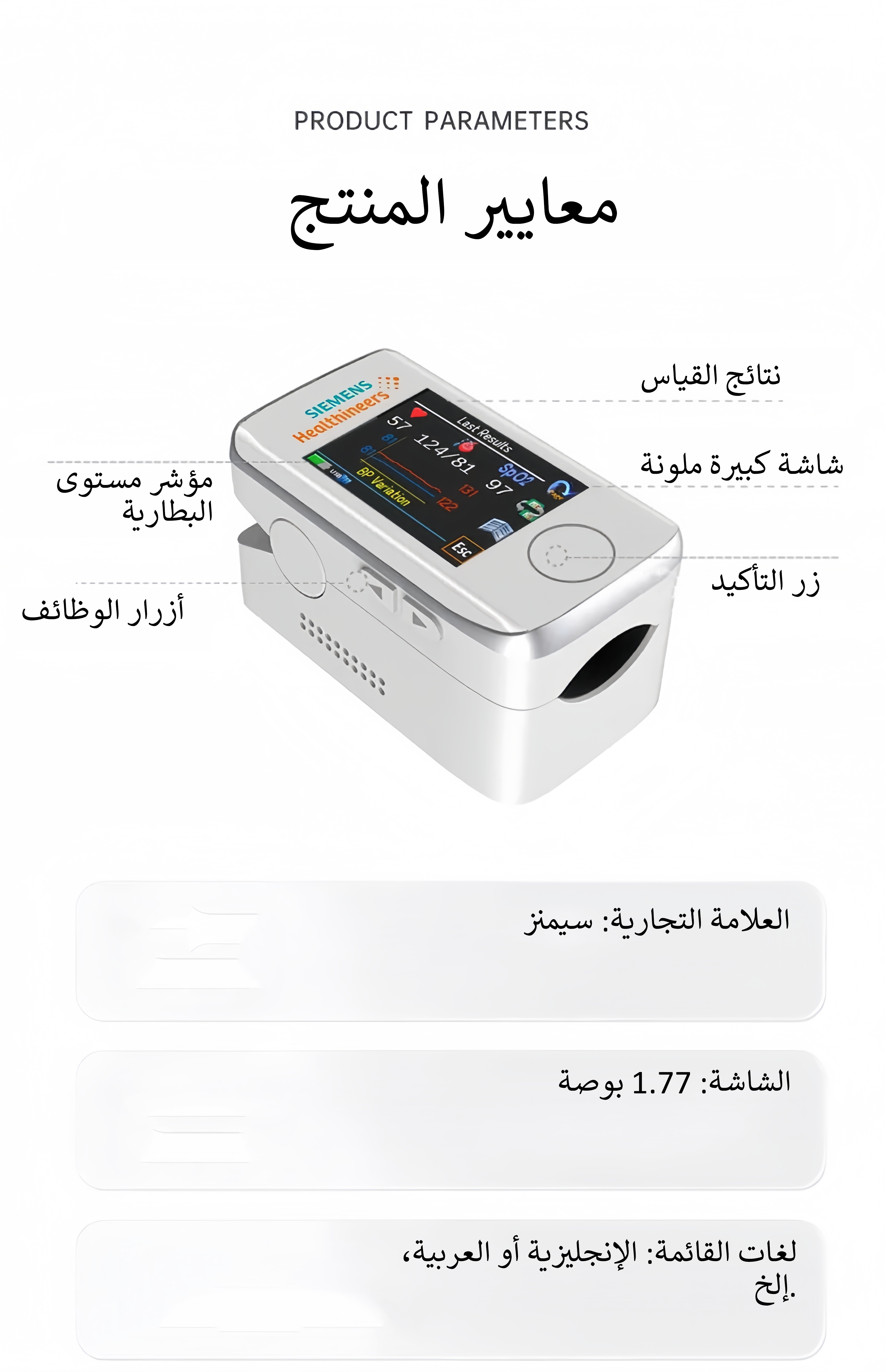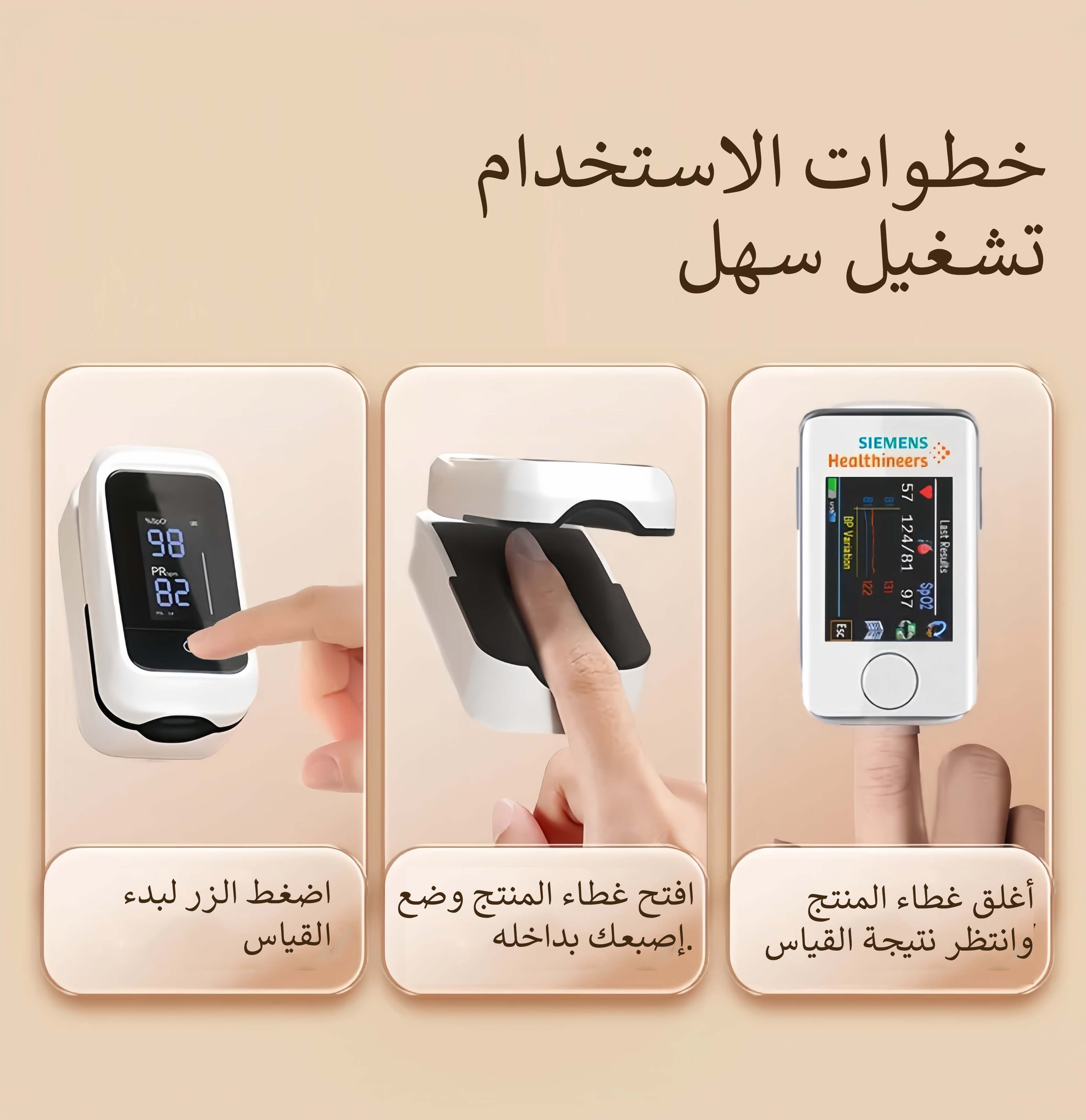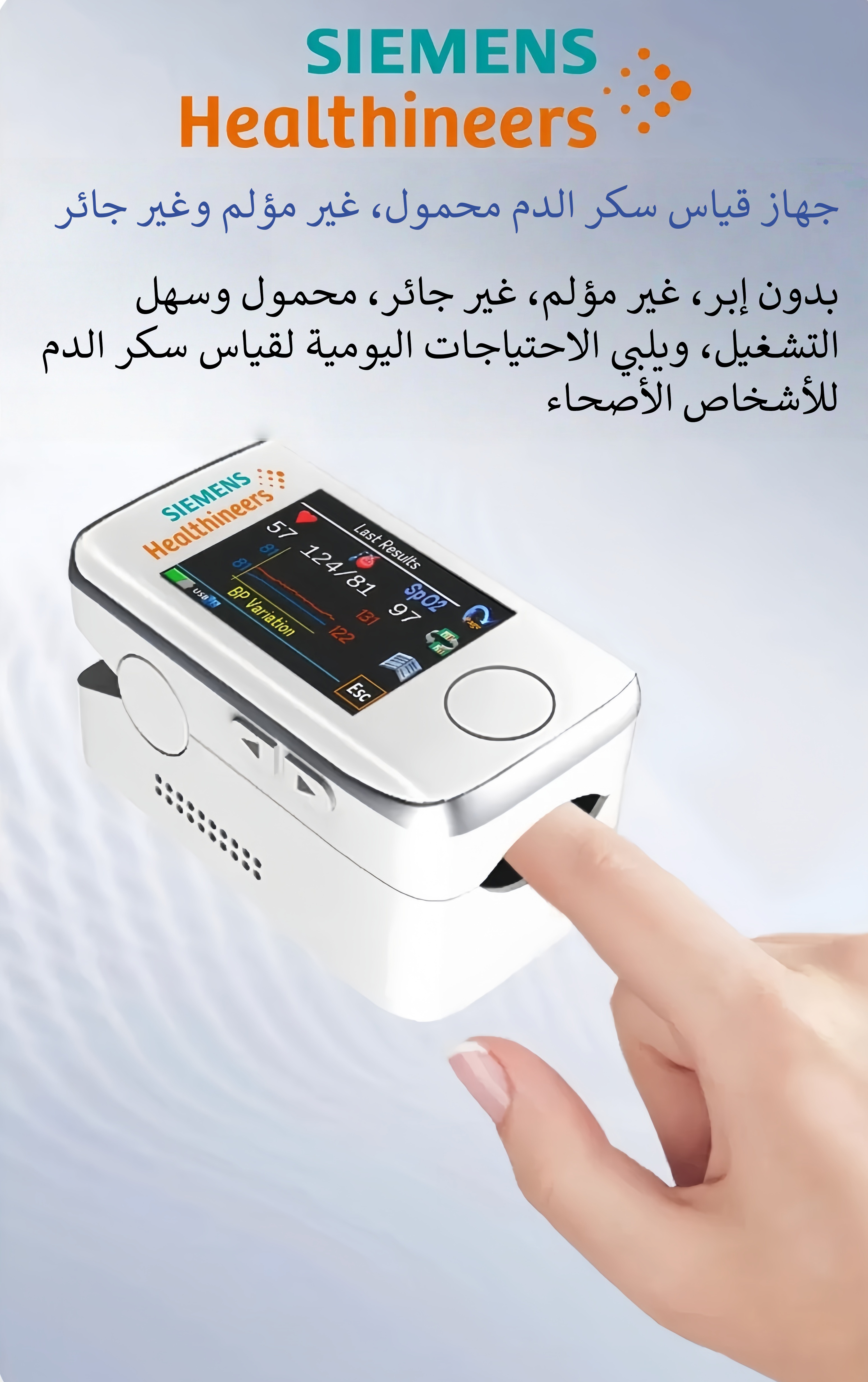 سهل التشغيل، فقط ضع إصبعك لإكمال القياس،