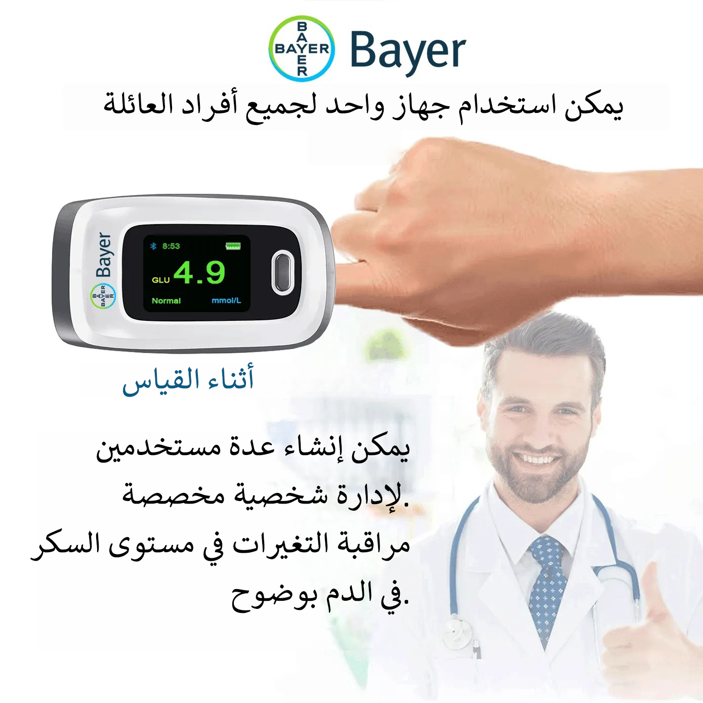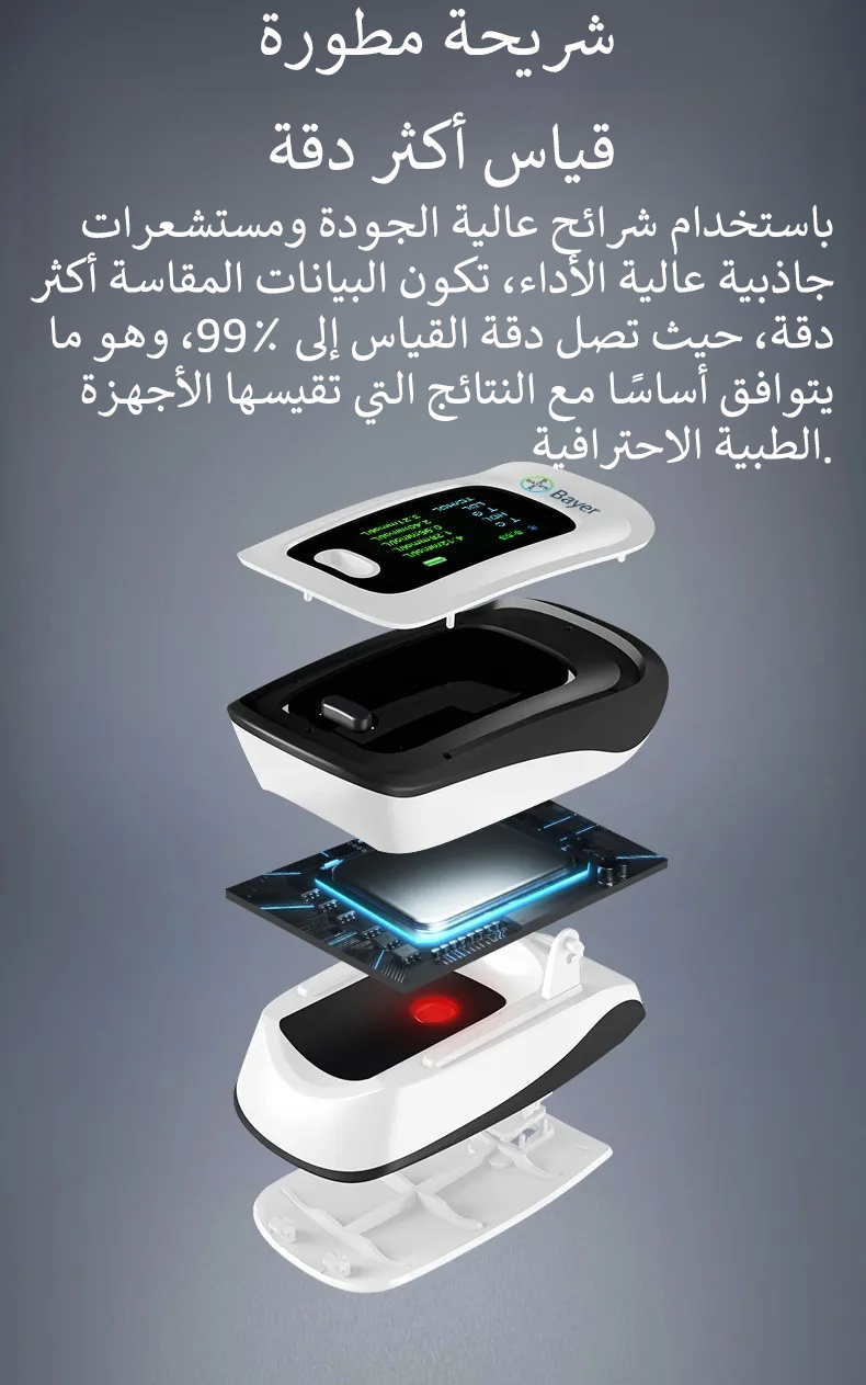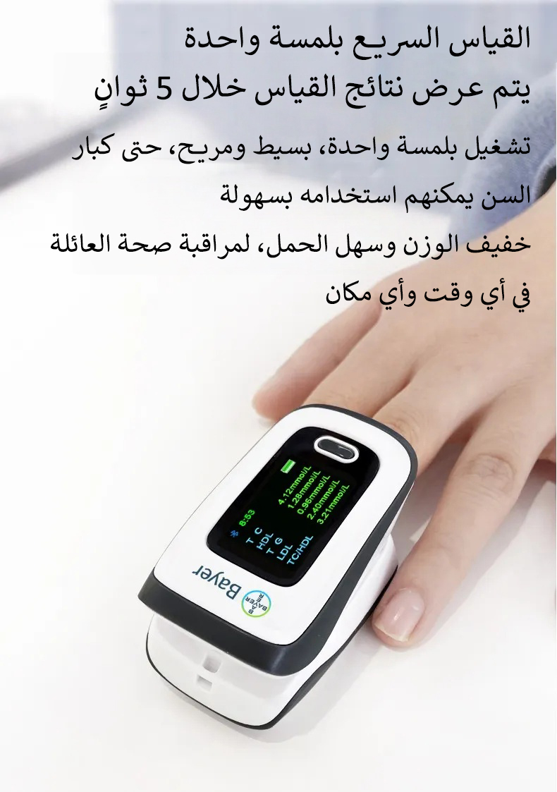 تقنية قياس غير غازية فريدة، بدون الحاجة لسحب الدم، غير غازية وبدون ألم، أسهل وأكثر راحة في الاستخدام.